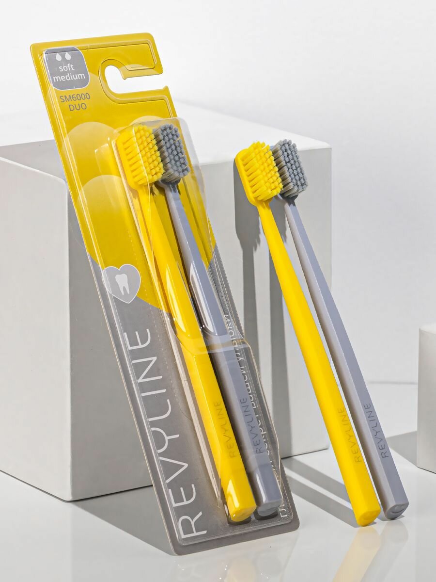 10 цен на Набор зубных щеток Revyline DUO SM6000 Yellow + Grey, мягкие, 6000 щетинок, 2 шт