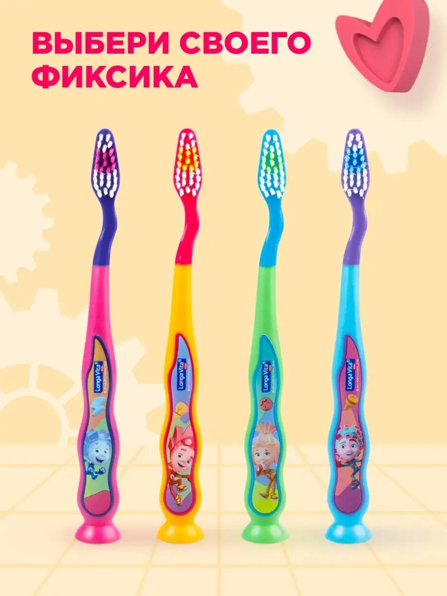 Детская зубная щетка с защитным колпачком, Фиксики, розовая, от 3-х лет, Longa Vita