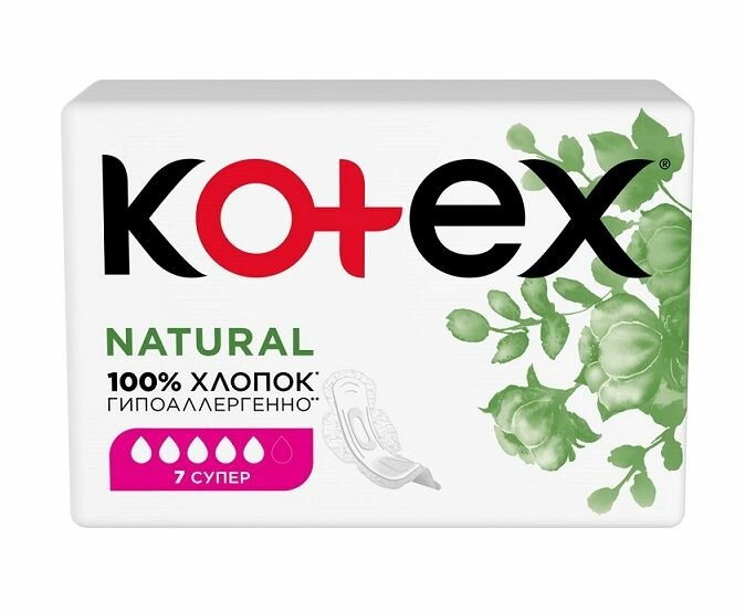 Прокладки женские гигиенические Kotex Natural Super, 7 шт