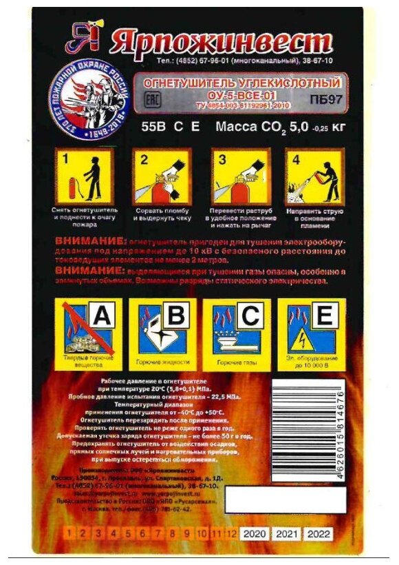 Огнетушитель ОУ-5 углекислотный 5кг BCE ярпожинвест информация: