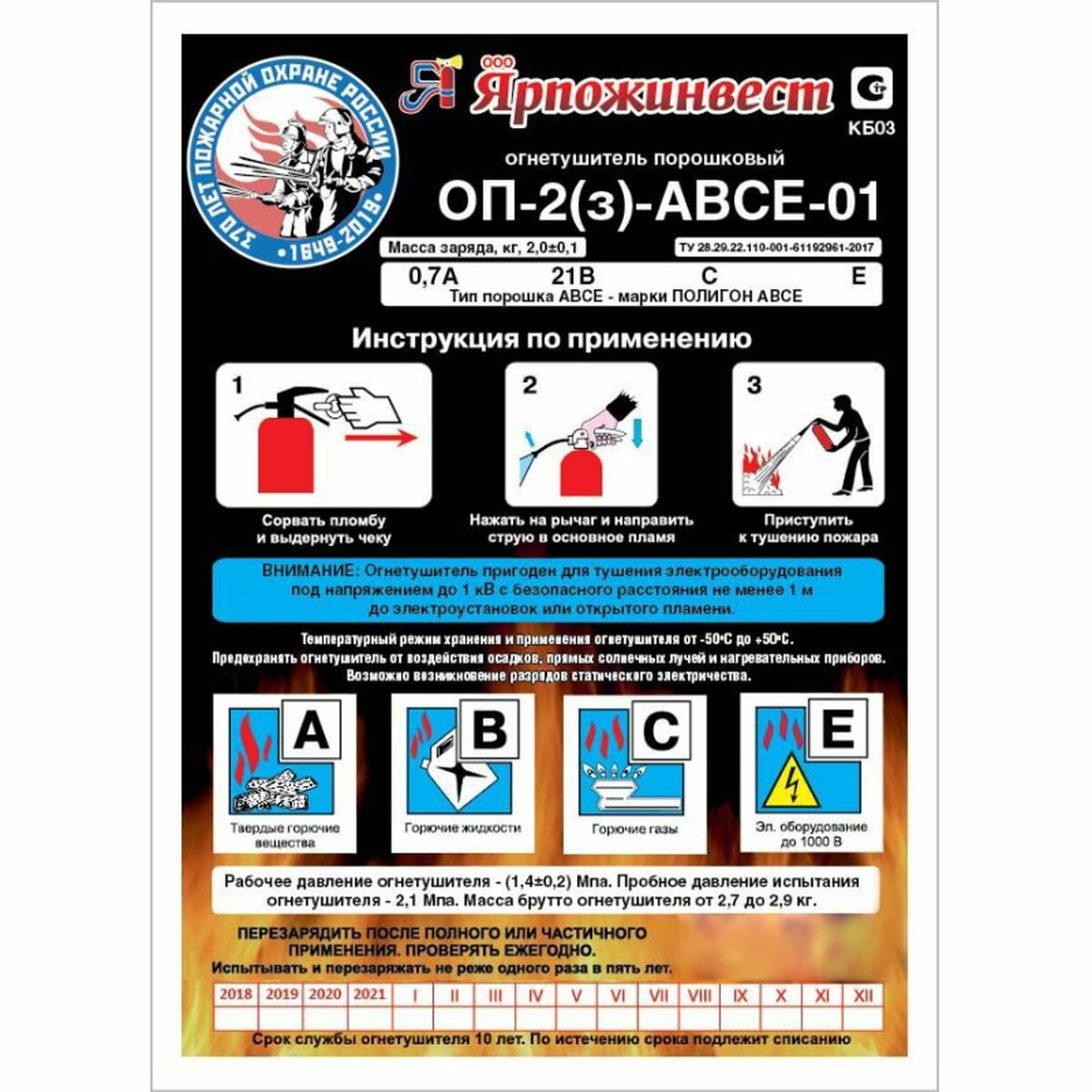 Огнетушитель порошковый ОП-2(з) ABCE Ярпожинвест информация: