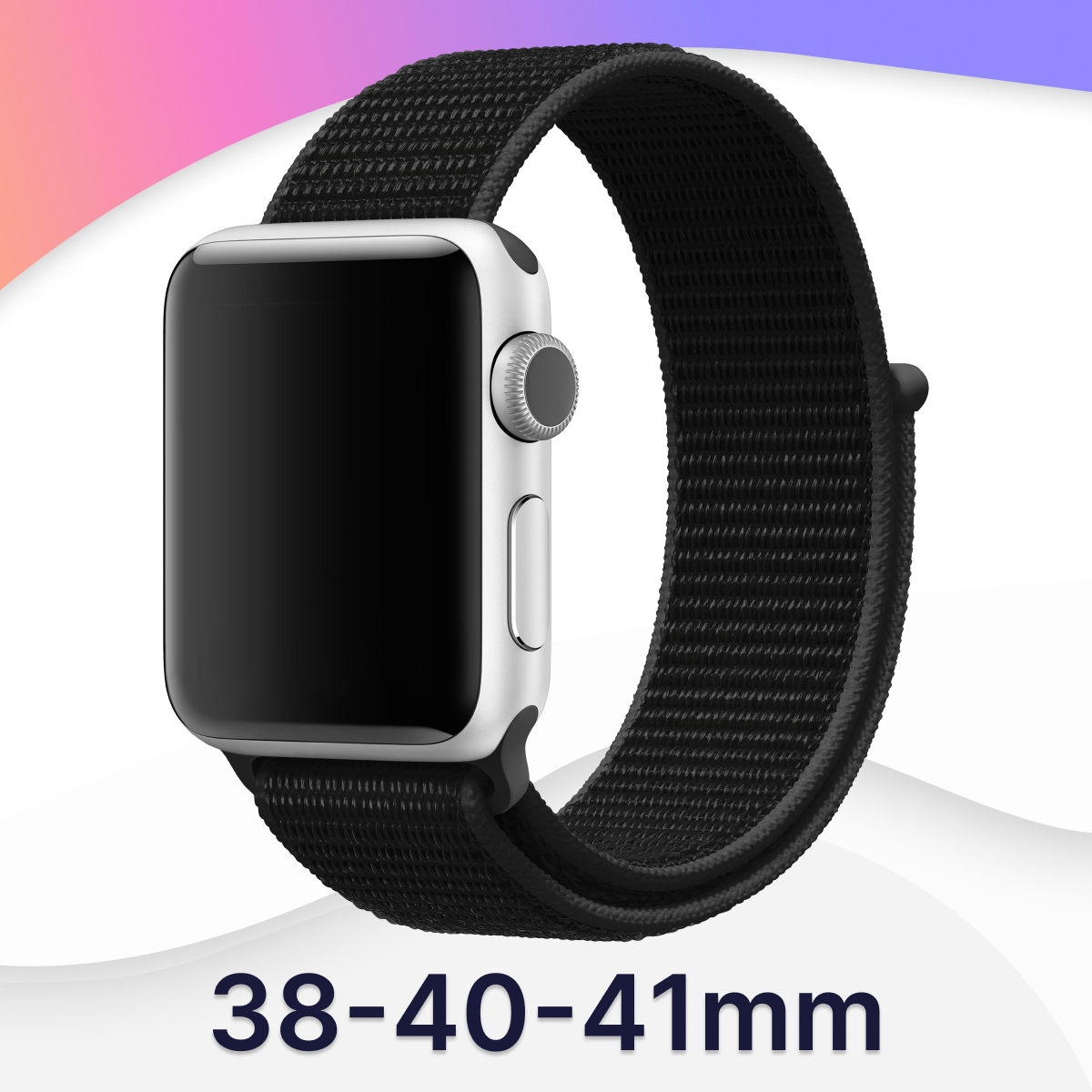 Отзывы на Нейлоновый ремешок для Apple Watch 38-40-41 mm, Series 1-9, SE / Тканевый браслет на часы Эпл Вотч / Черный