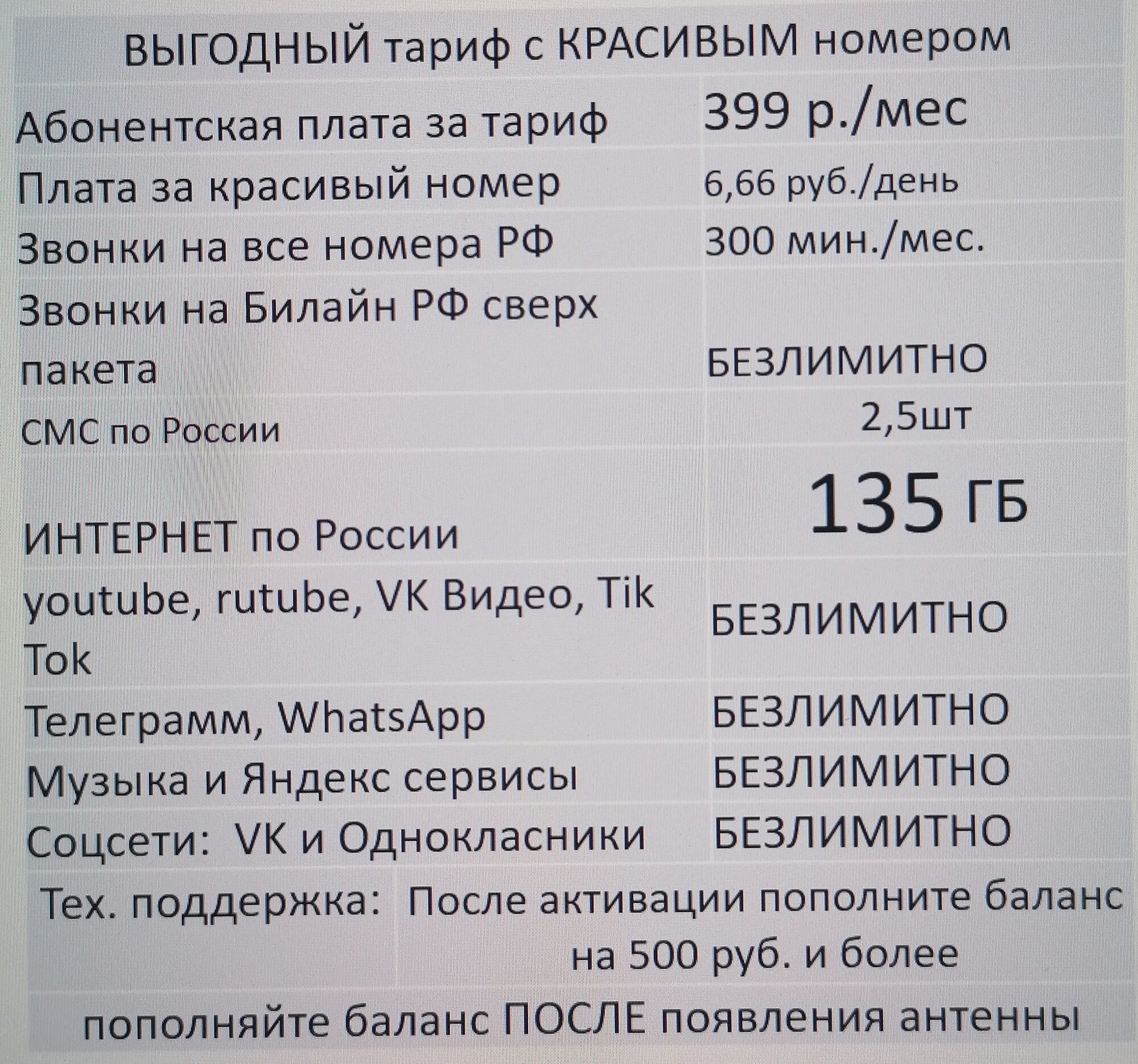 | Дополнительная информация | Безлимитный интернет |