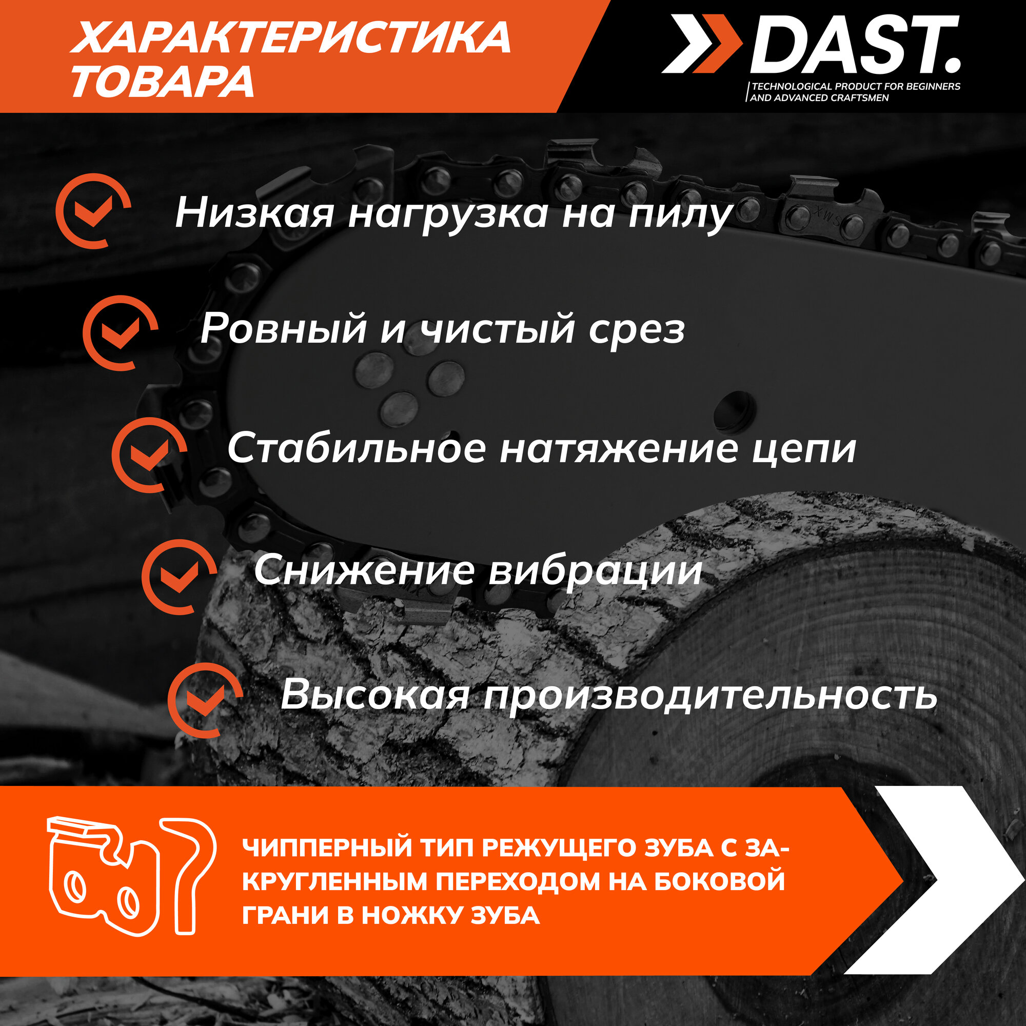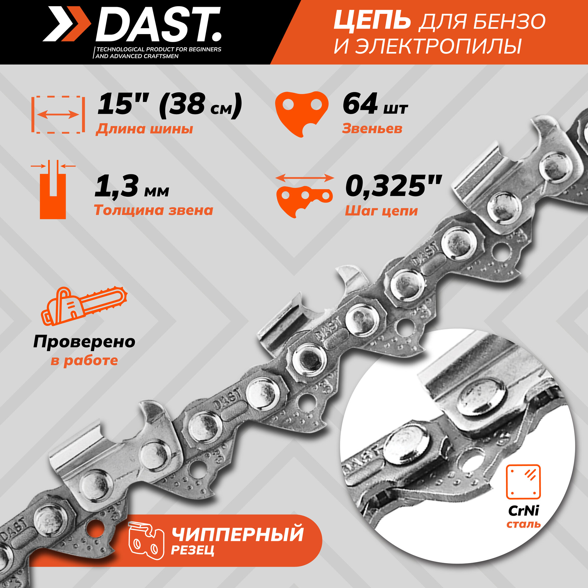 Отзывы на Пильная цепь DAST 0.325"-1.3-64 звеньев, шаг 0.325", паз 1.3 мм, для шины 15 дюймов