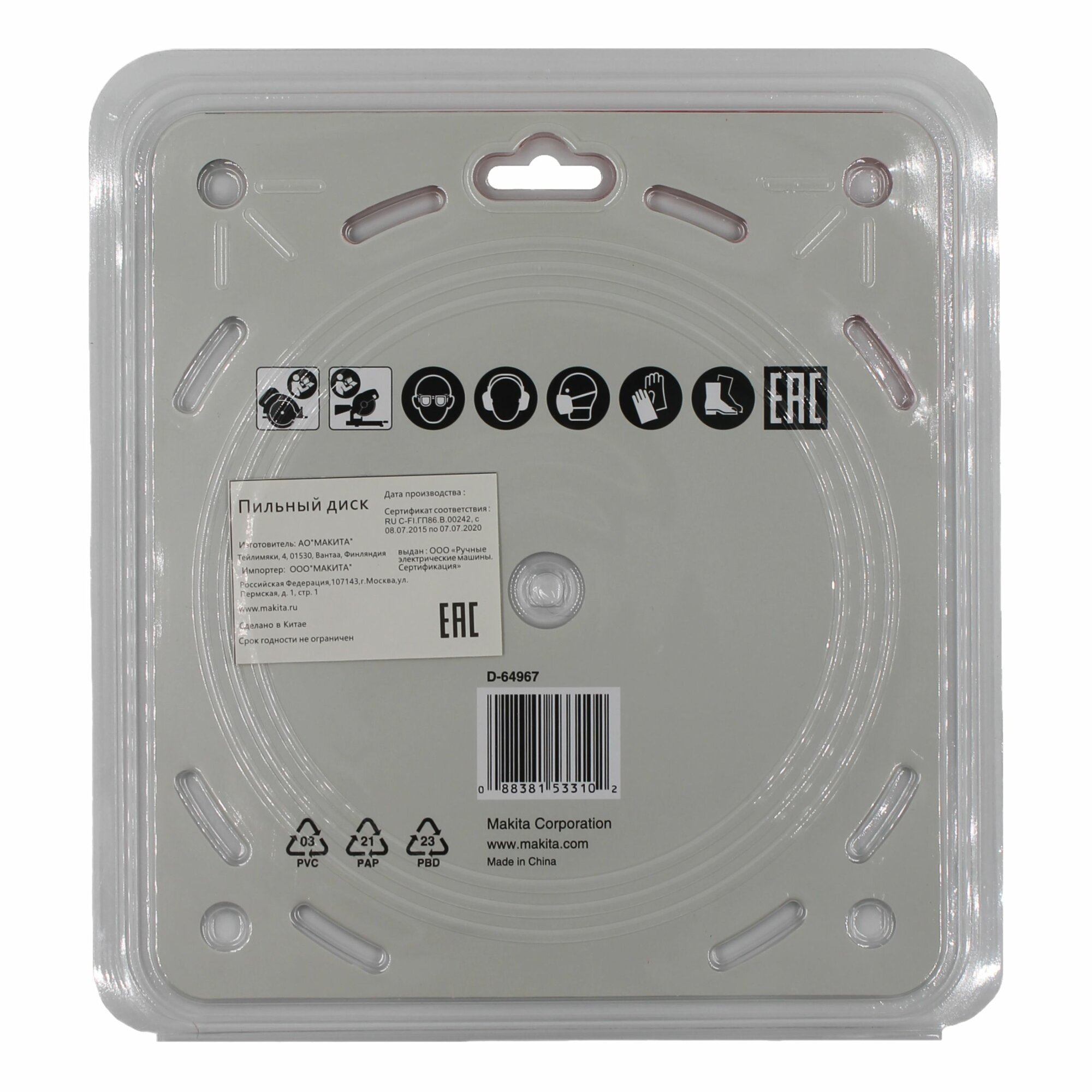 Пильный диск для дерева с твердосплавными напайками, 190x30x2.2/1.4x40T Makita (Макита) (D-64967) оригинал информация: