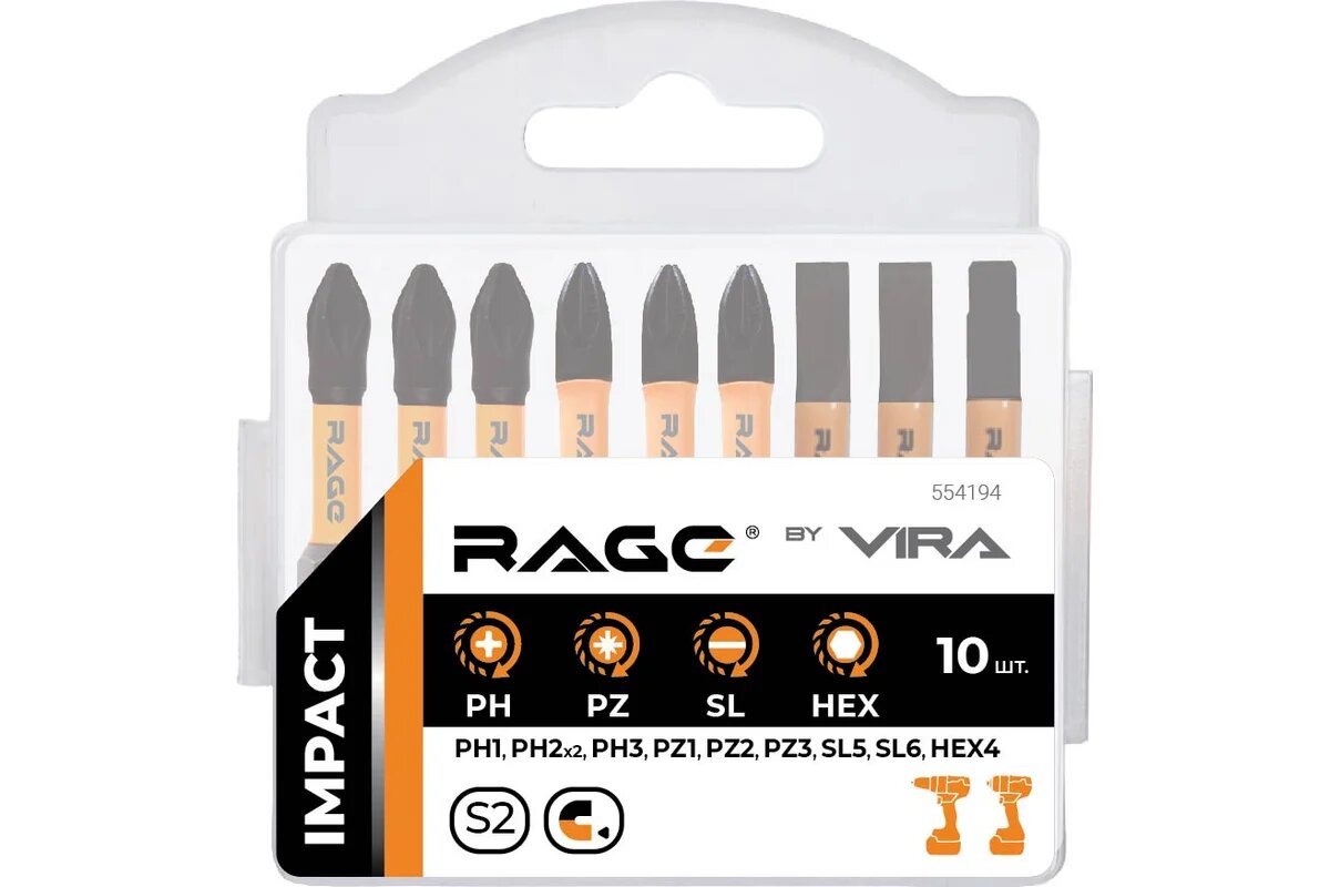 Набор бит ударных IMPACT S2, PH, PZ, SL, HEX x 50 мм, 10 шт RAGE By VIRA 554194 информация:
