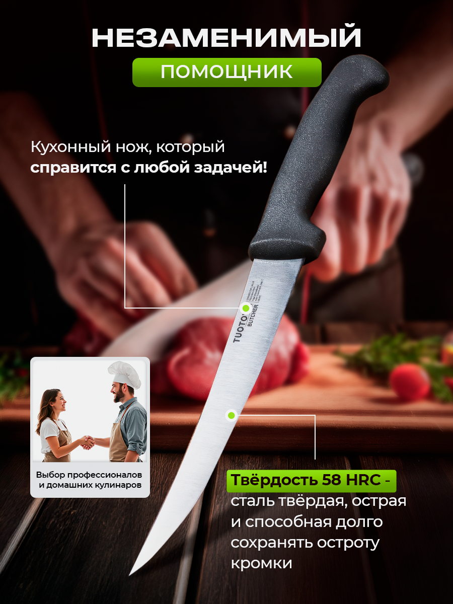 Отзывы на Кухонный нож филейный Butcher 20см Tuotown обвалочный для разделки мяса и рыбы