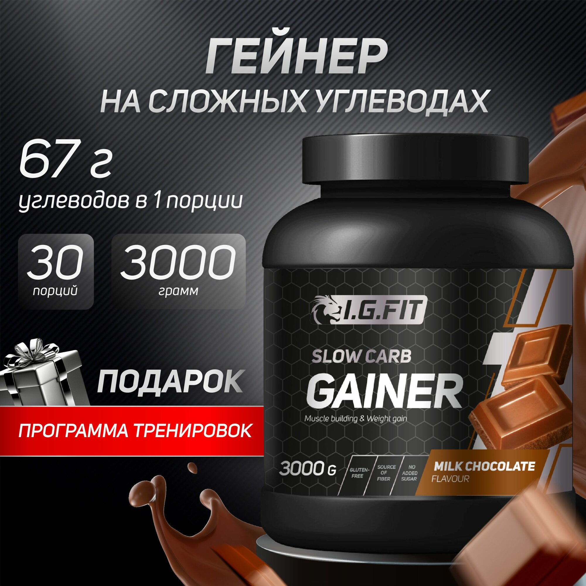 10 цен на Гейнер I.G.FIT PLATINUM для набора массы на сложных (медленных) углеводах, молочный шоколад 3000 гр / 30 порций / банка