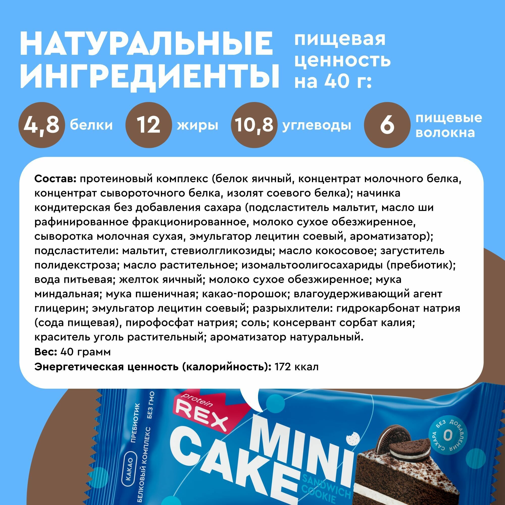 Протеиновое печенье без сахара ProteinRex Тортик Сэндвич-печенье 8 шт, спортивное питание информация: