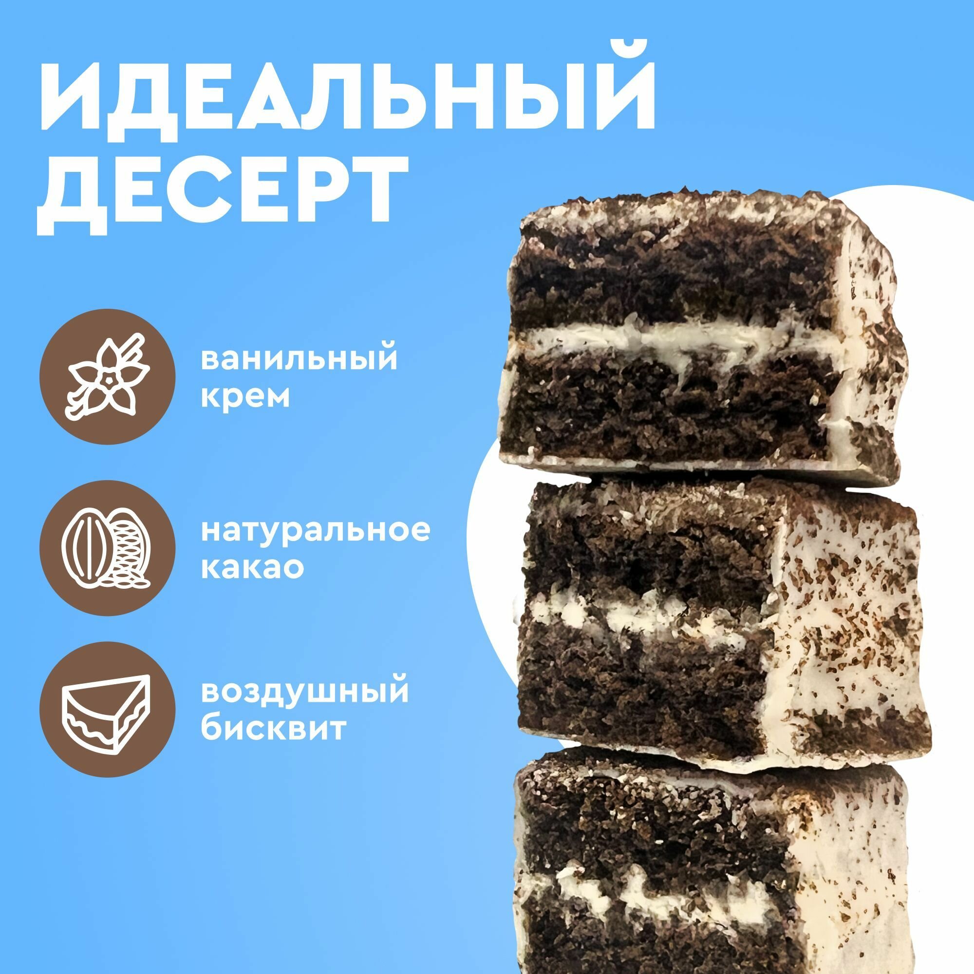 Протеиновое пирожное ProteinRex Тортик Кокосовый 8 шт десерт без сахара, низкокалорийное печенье, батончики, ПП сладости 174 ккал 882 ₽
