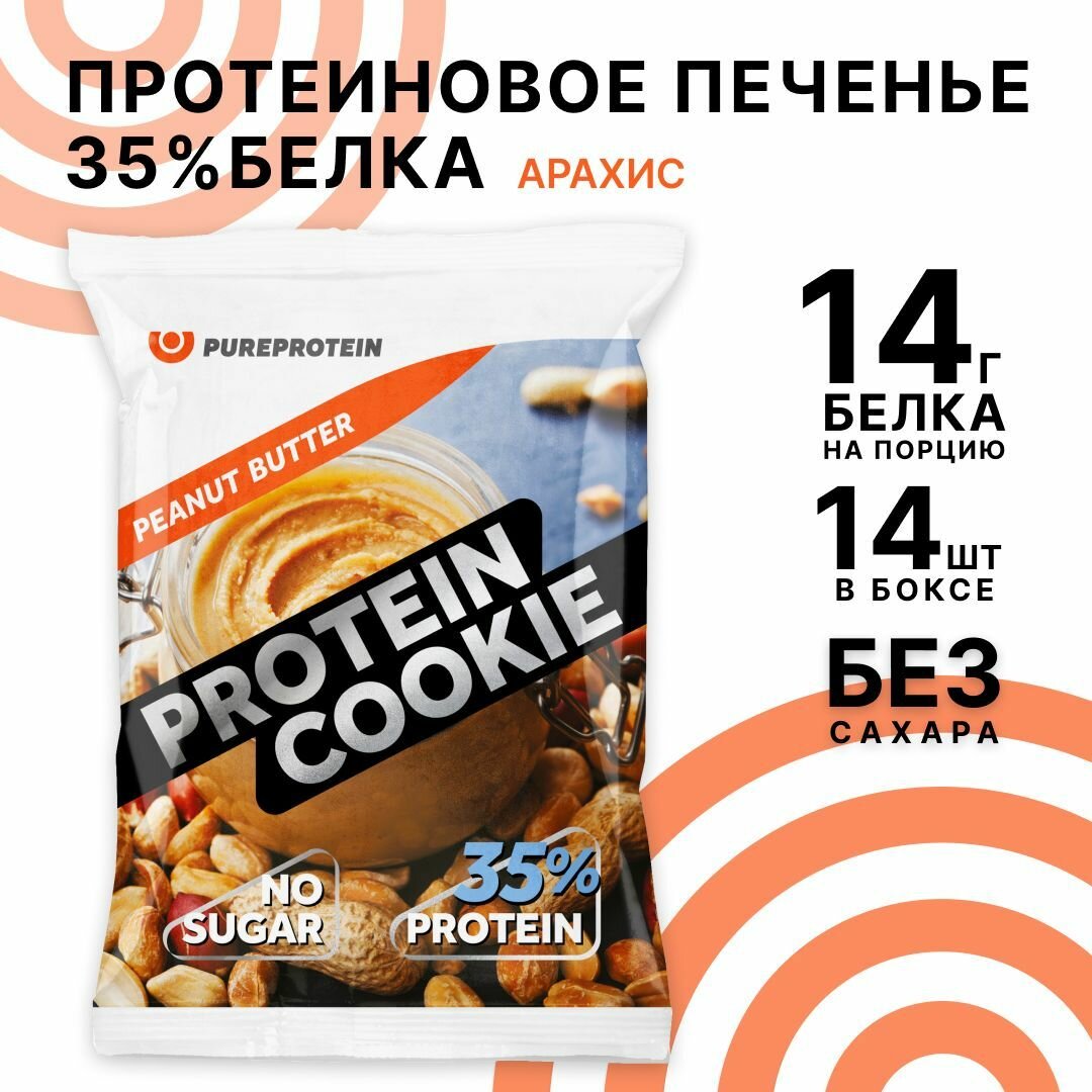 10 цен на Протеиновое печенье PureProtein 35% белка, арахисовое масло, без сахара, 14шт по 40г