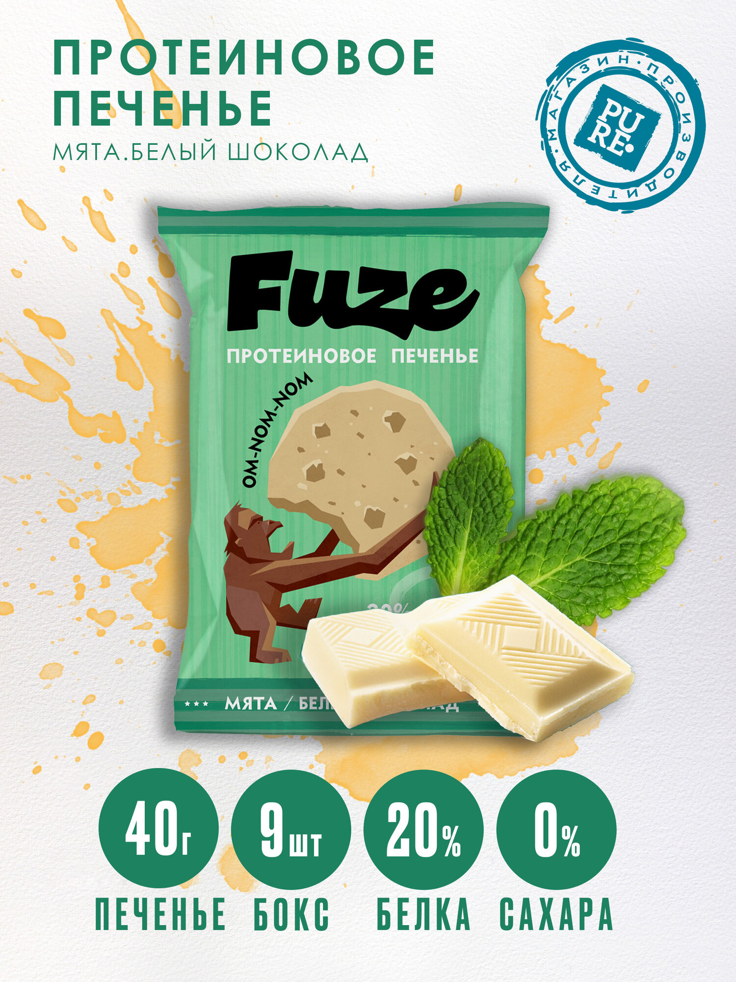 10 цен на Печенье протеиновое FUZE без пшеничной муки, мята-белый шоколад, 9шт х 40г