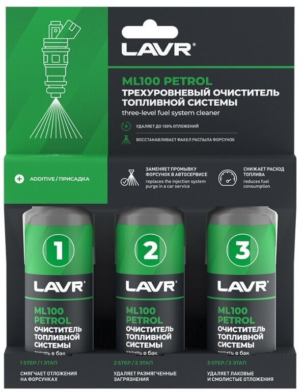 Отзывы на LAVR Трехуровневый очиститель топливной системы LAVR ML100, 3х120 mL (360мл) LN2137
