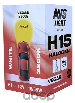 Галогеновая лампа AVS "Vegas", H3, 12В, 55Вт, белый свет, для легковых автомобилей