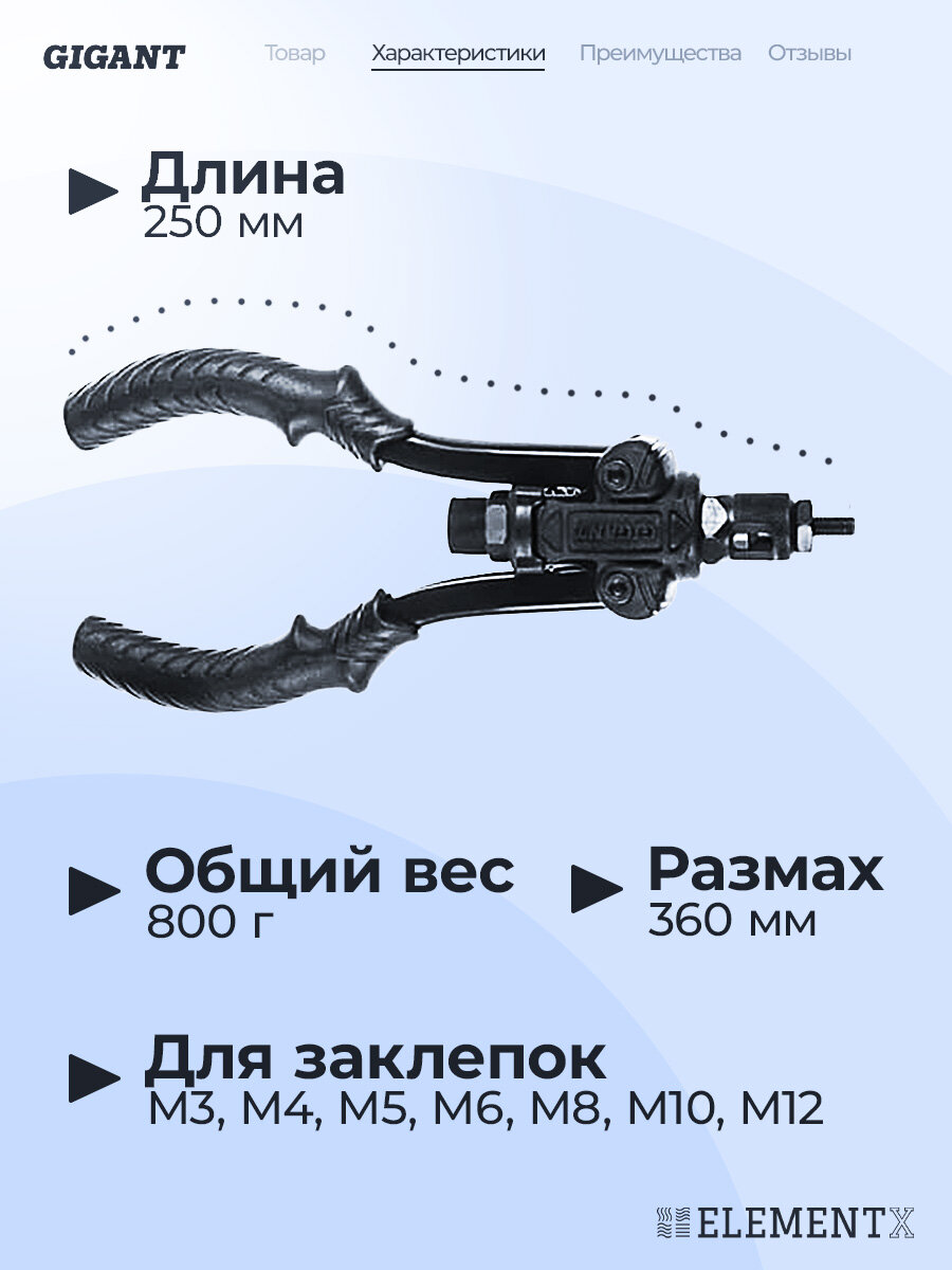 Отзывы на Заклепочник для резьбовых заклепок М3 М4 М5 М6 М8 М10 М12 Gigant GHR-12