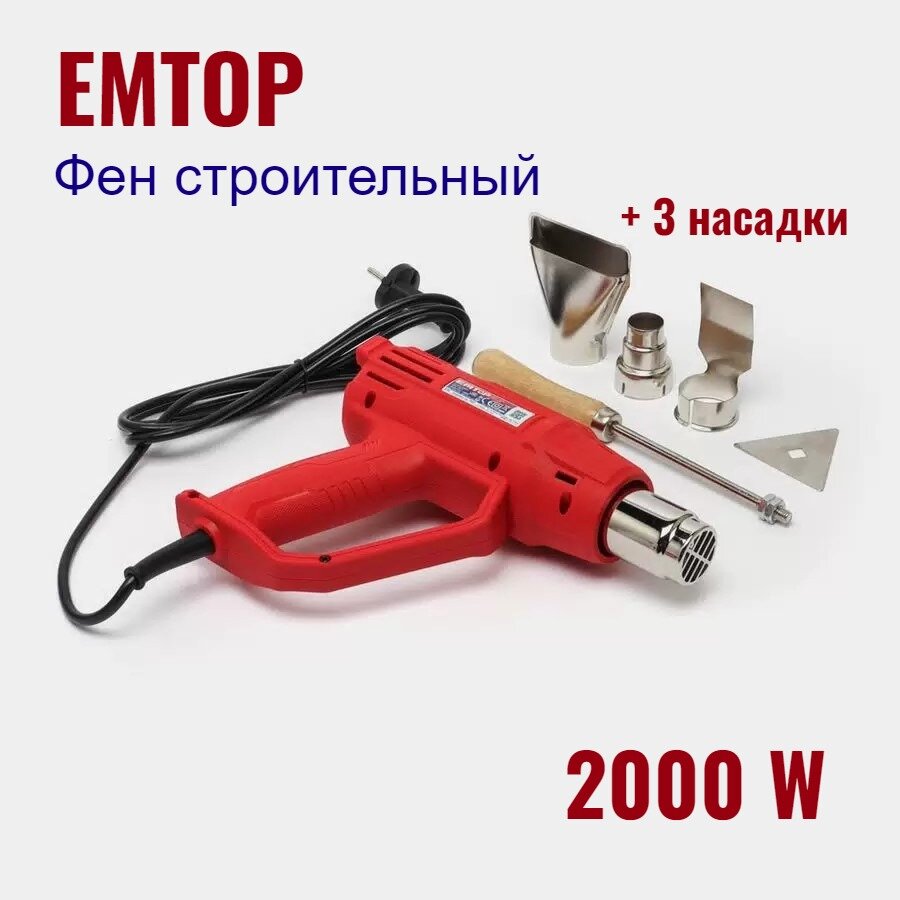 10 цен на Фен строительный EMTOP 2000 Вт с насадками регулировка температуры