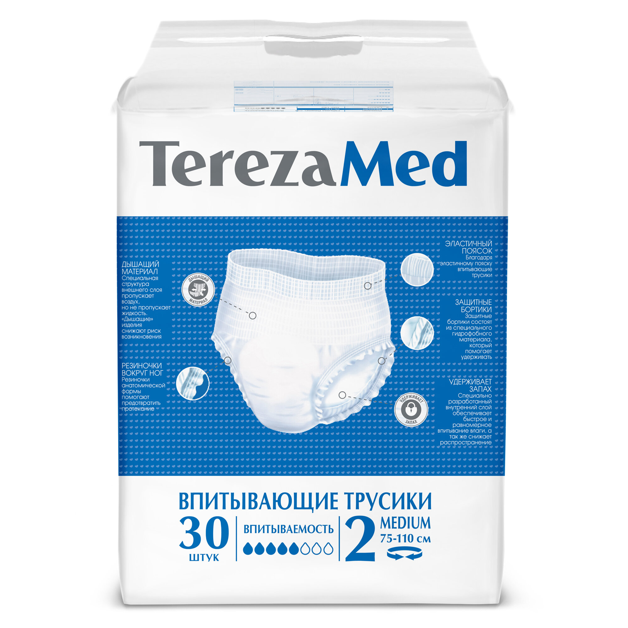 Подгузники-трусы TerezaMed Medium (№2), объем талии 75-110 см, 30 шт. информация: