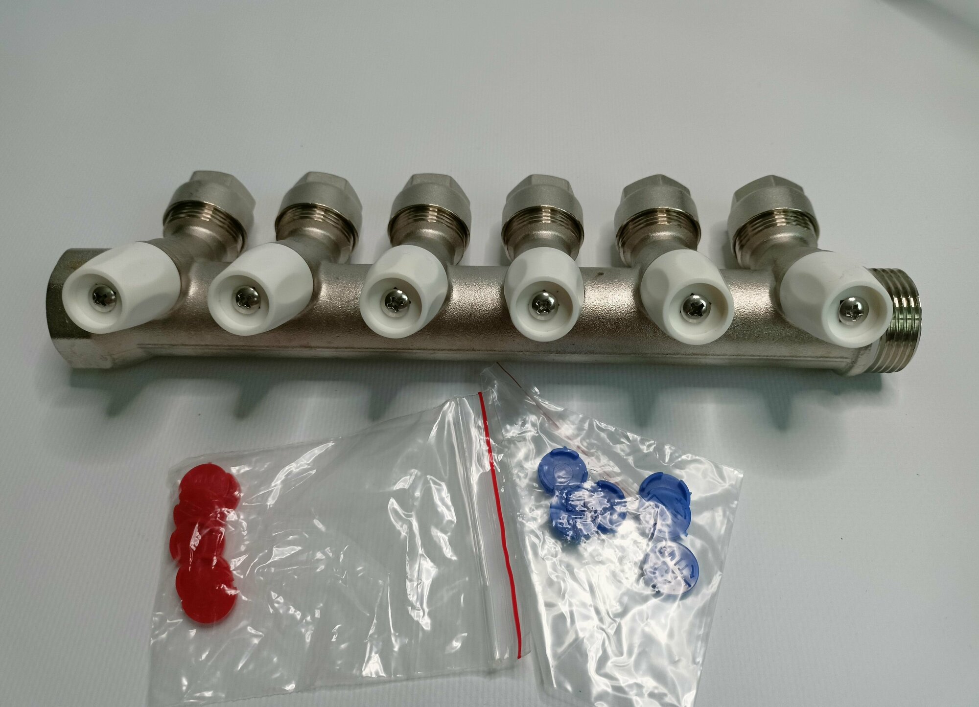 Коллектор полипропиленовый с кранами 6 выходов красный 40-20 Imperial