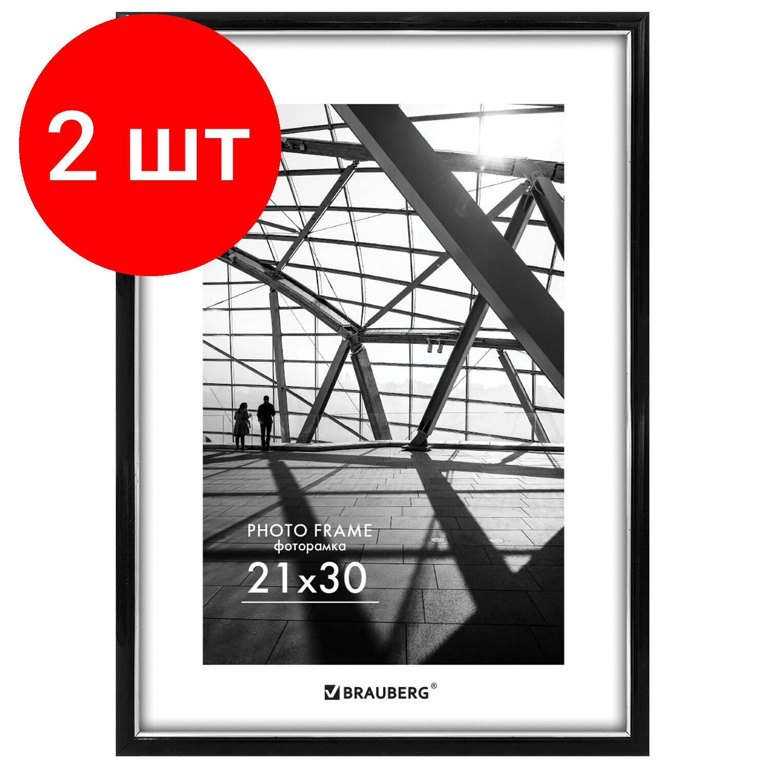 Комплект 2 шт, Рамка 21х30 см небьющаяся, багет 14.6 мм, пластик, BRAUBERG "Original Line", черная/серебро, 391234 информация: