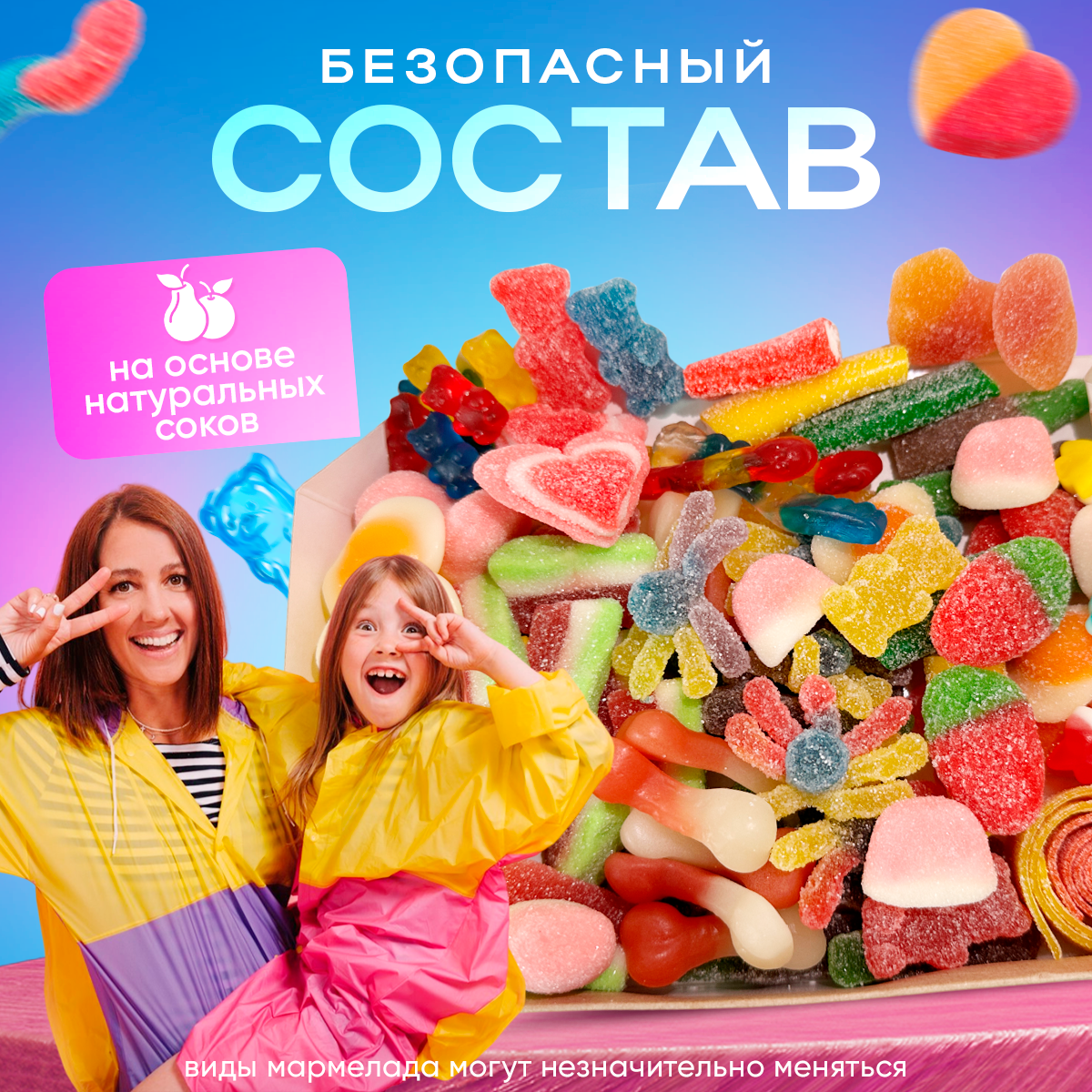 Мармелад жевательный российский желейный подарочный фигурный разноцветный ассорти вкусов 1500 грамм