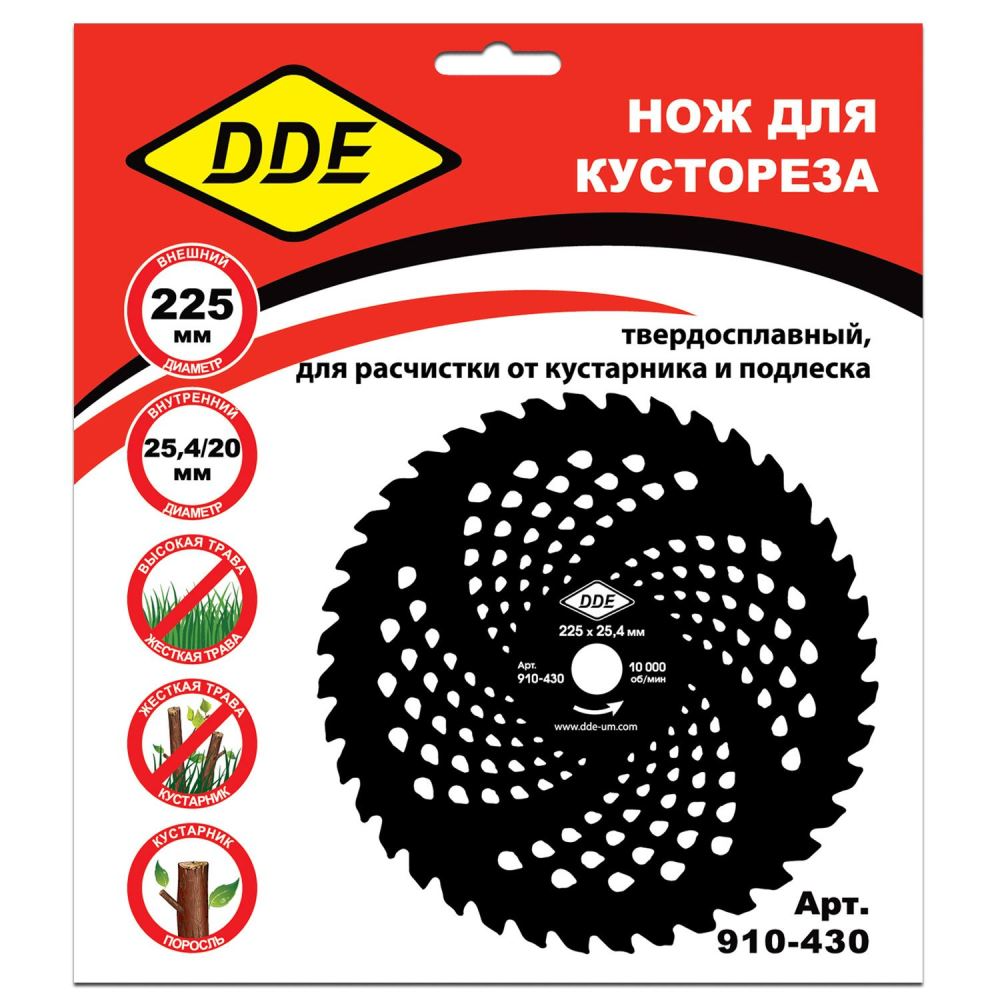 | Подробная комплектация | Нож для кустореза DDE WOOD CUT твердосплавный, 40 зубьев, 225 х 25,4/20 (толщина 1,3 мм) |