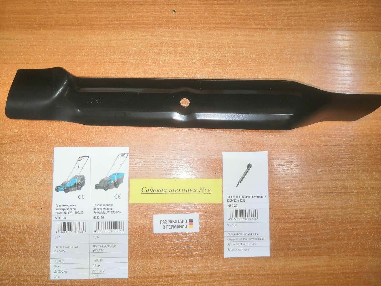 | Комплектация | цветная картонная коробка с информацией о продукте, нож запасной для газонокосилки 32 Е |