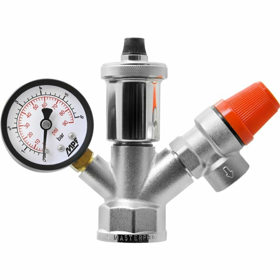 10 цен на Группа безопасности (автоматический воздухоотводчик, манометр, предохранительный клапан) 1" 030229