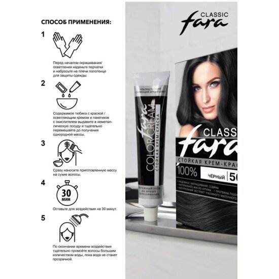Fara Classic Стойкая крем-краска для волос, 501а, иссиня-черный, 115 мл 195 ₽
