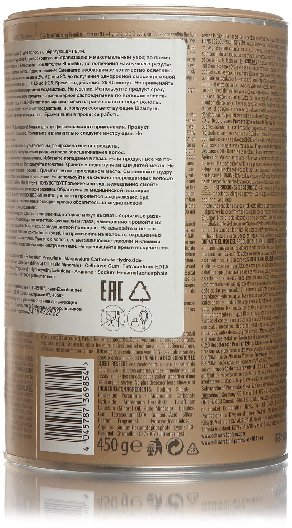 Schwarzkopf Professional BlondMe Premium Lift 9+ Bleach - Шварцкопф Обесцвечивающая пудра БлондМи 9+, 450 гр - информация: