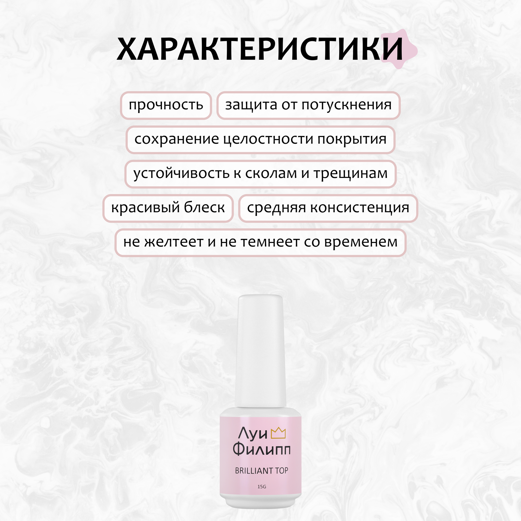 10 цен на Прозрачное верхнее покрытие для гель-лака Луи Филипп Brilliant, 15 мл