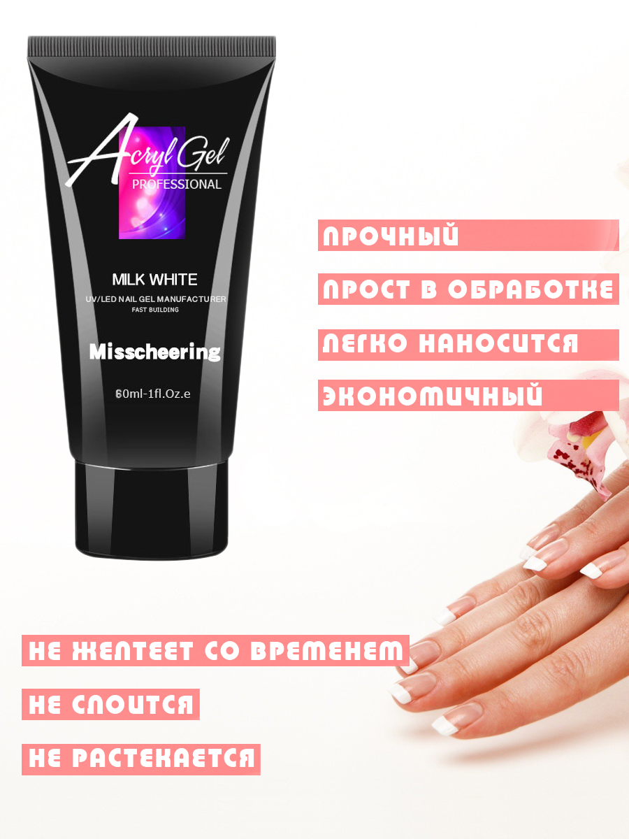Полигель акригель для наращивания ногтей акриловый моделирующий молочный белый 60мл информация: