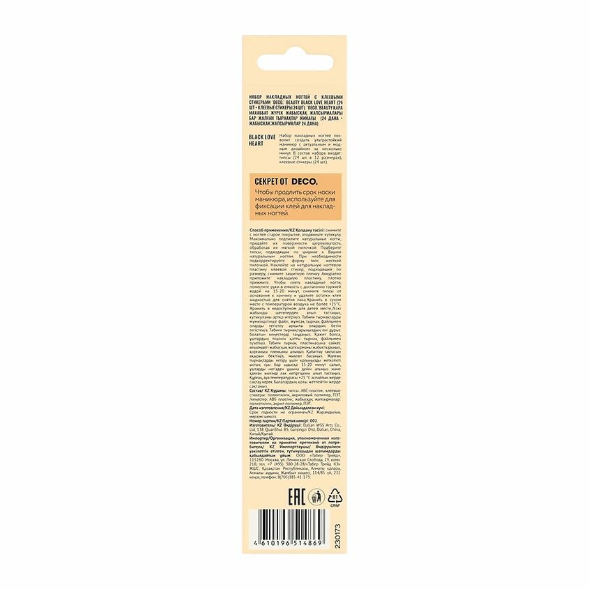10 цен на Набор накладных ногтей с клеевыми стикерами DECO. BEAUTY black love heart (24 шт + клеевые стикеры 24 шт)