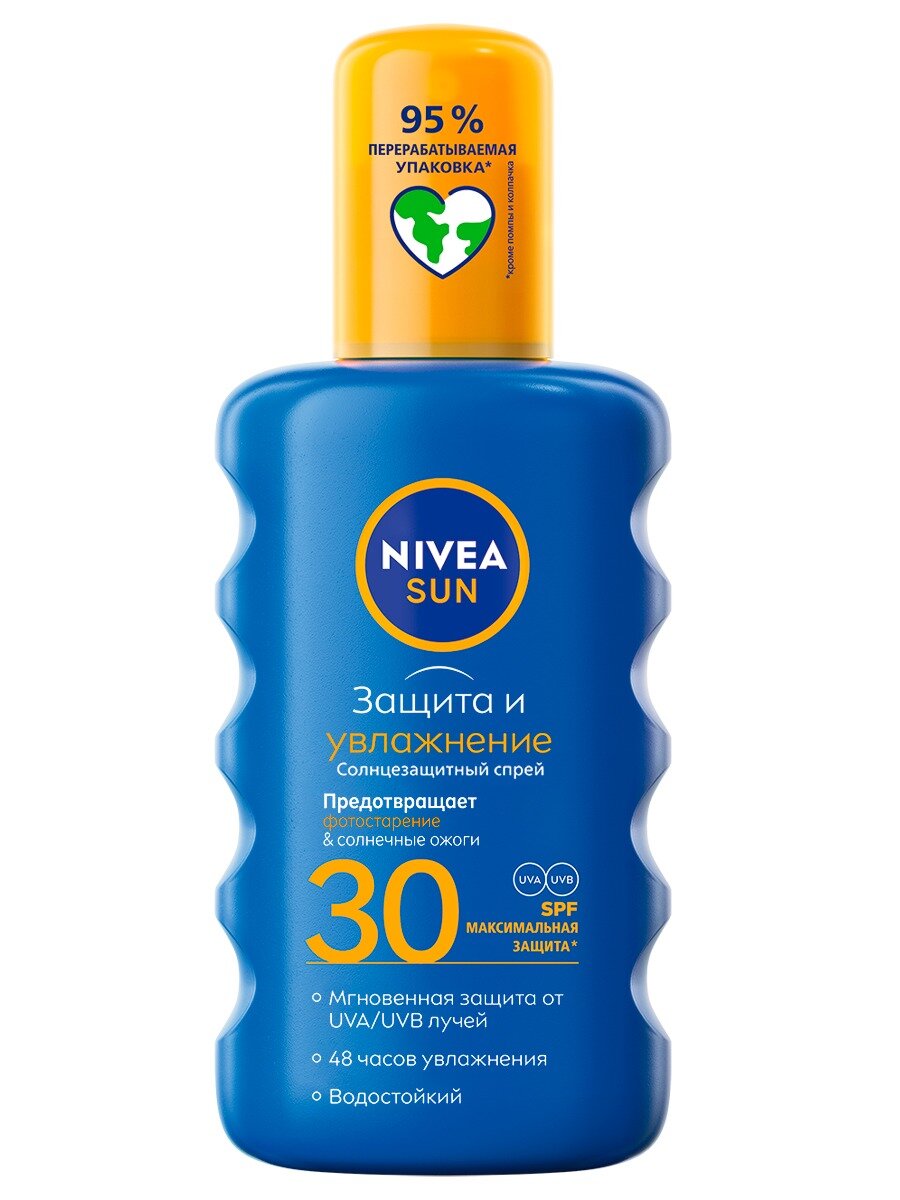 Отзывы на Спрей солнцезащитный Защита и увлажнение SPF30 Sun Nivea/Нивея фл. 200мл (85402)
