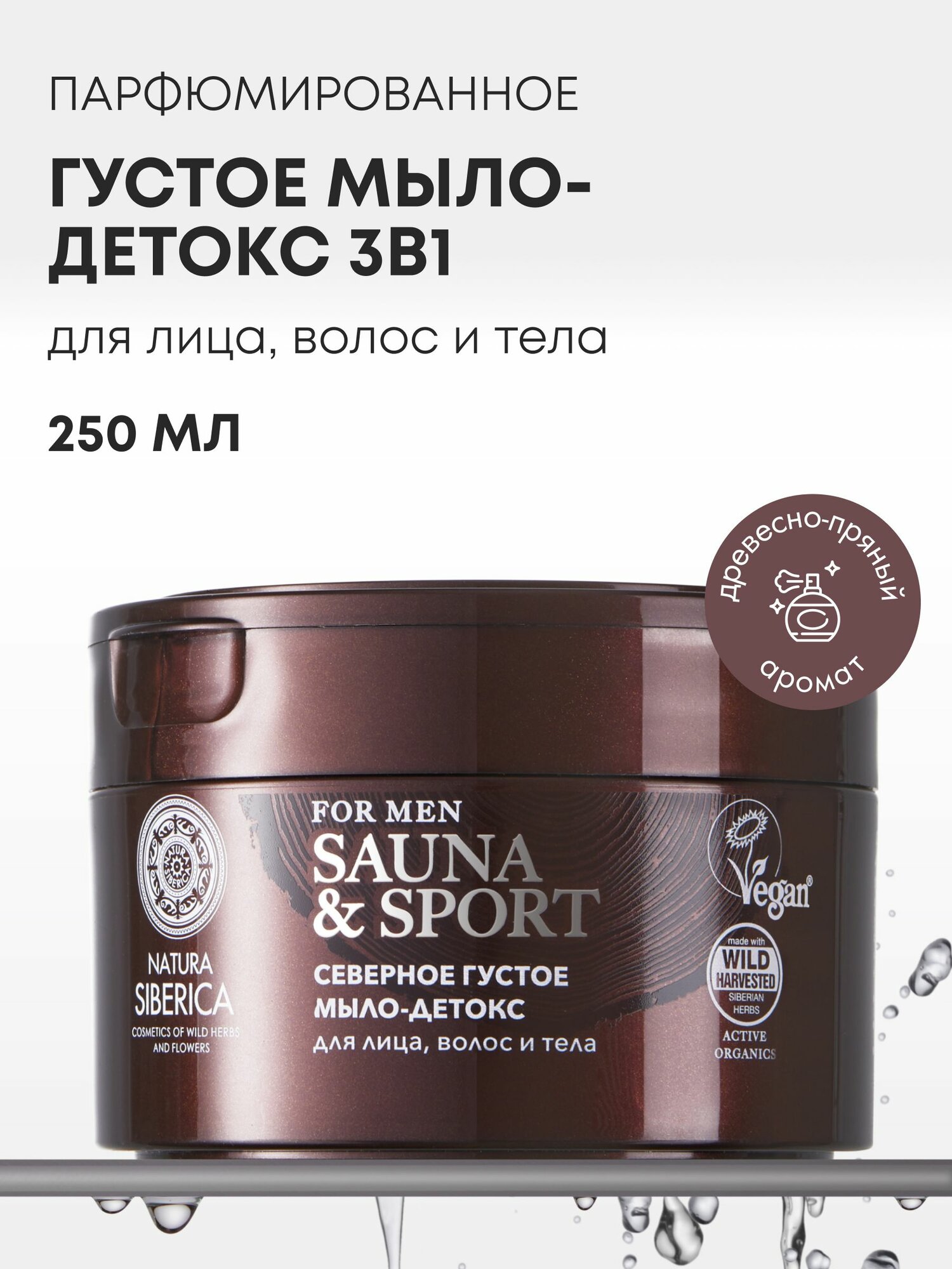 10 цен на Natura Siberica Sauna&Sport Парфюмированное северное мыло детокс для бани и душа мужское густое для волос, лица и тела 250 мл