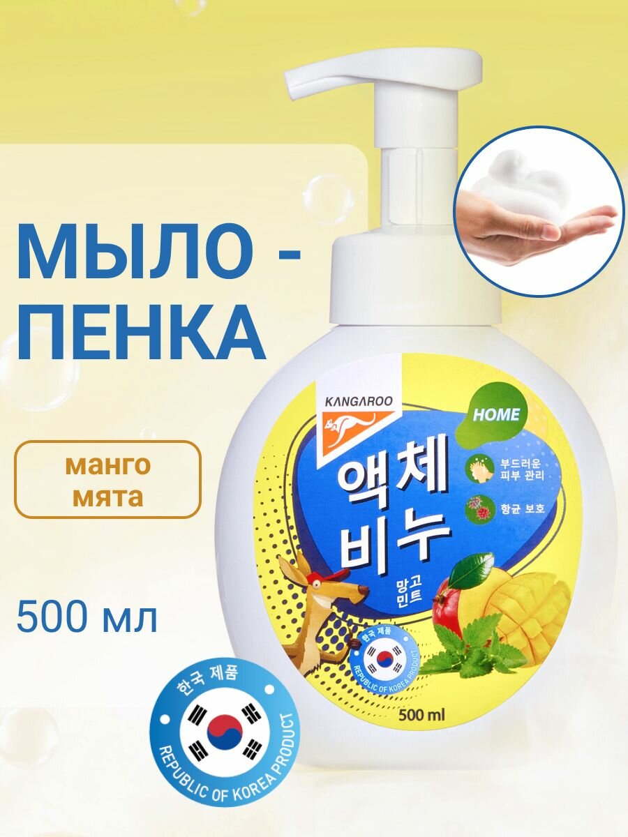 10 цен на Корейское жидкое мыло пенка с ароматом манго и мяты Kangaroo Home, 500 мл