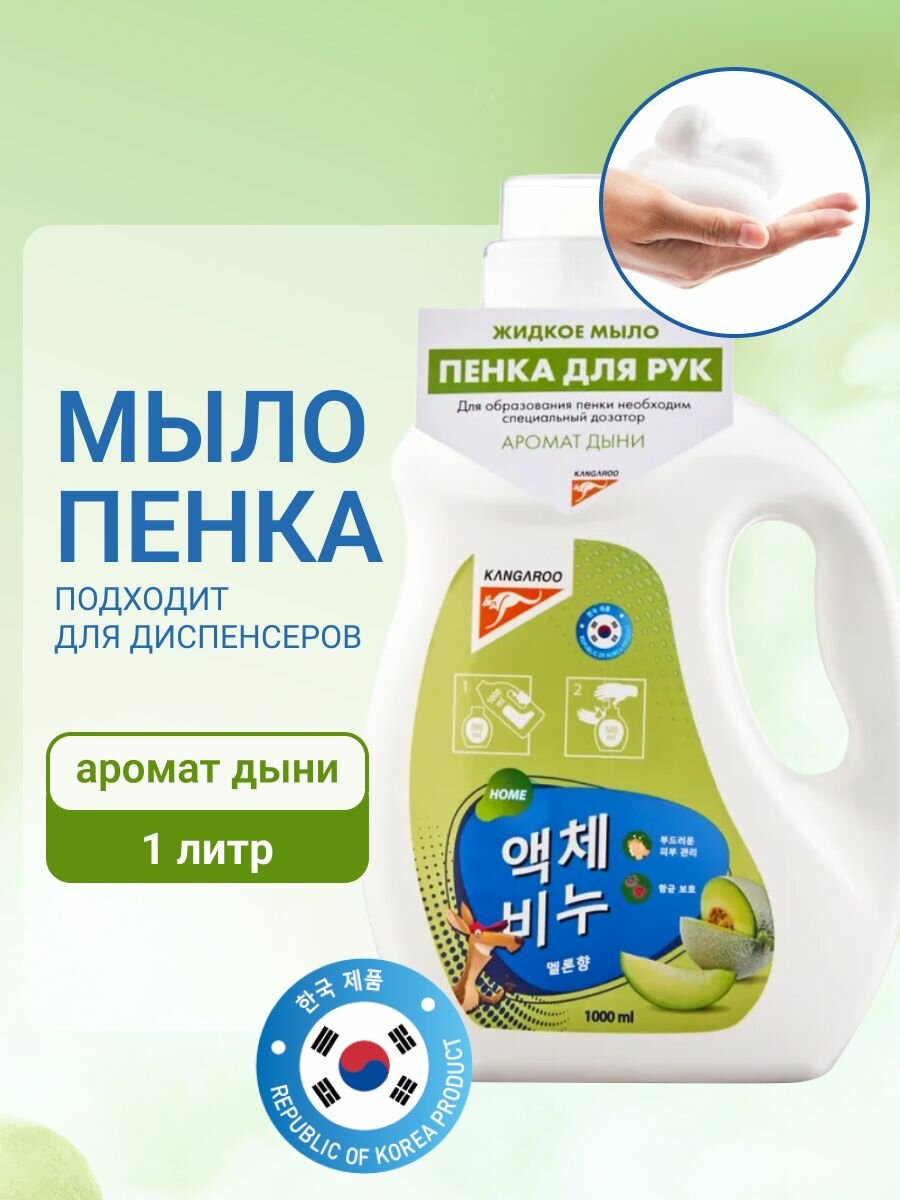 Жидкое увлажняющее мыло-пенка Kangaroo Home 1 литр с ароматом дыни, рефил для дозаторов и диспенсеров информация: