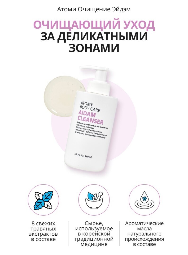 Отзывы на Средство для очищения деликатных мест AIDAM 200 мл, Атоми/Atomy, Корея