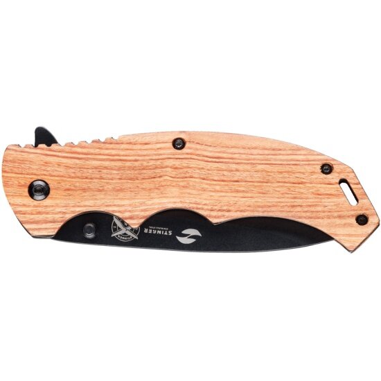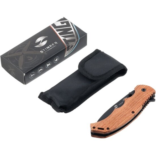 Нож Stinger складной , 120 мм, (чёрный), материал рукояти: дерево/сталь (серый), в картонной коробке