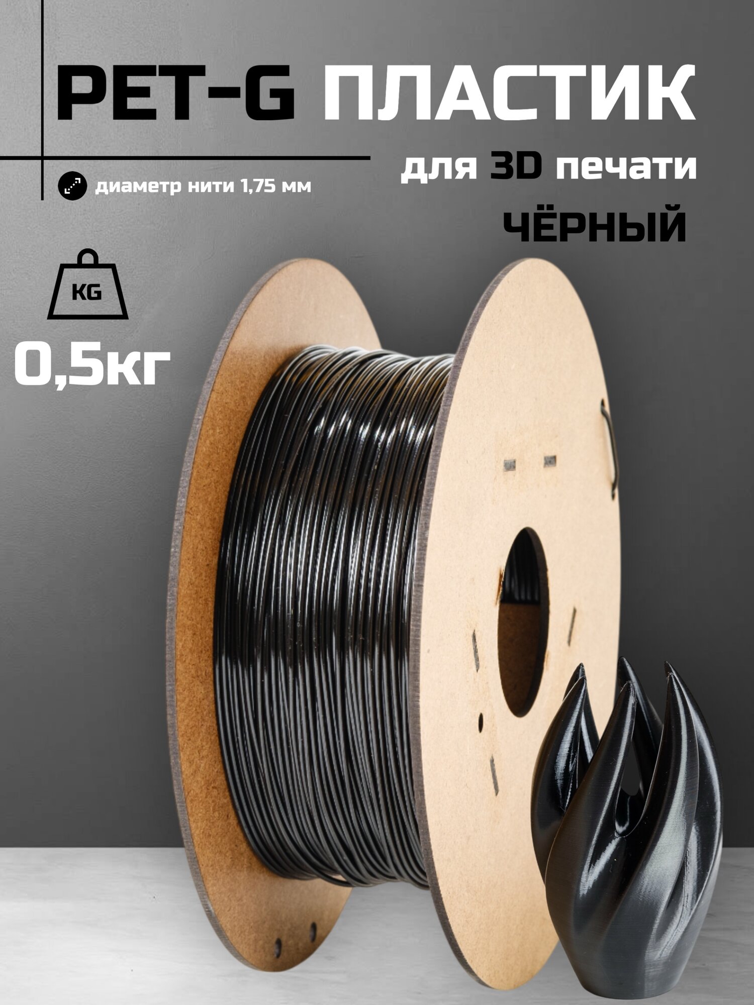 10 цен на Пластик для 3d принтера PETG, диаметр 1.75 мм "Черный", 0,5 кг.