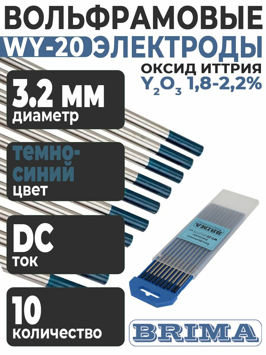 Электроды вольфрамовые WY-20 (10 шт; 3.2х175 мм) BRIMA информация: