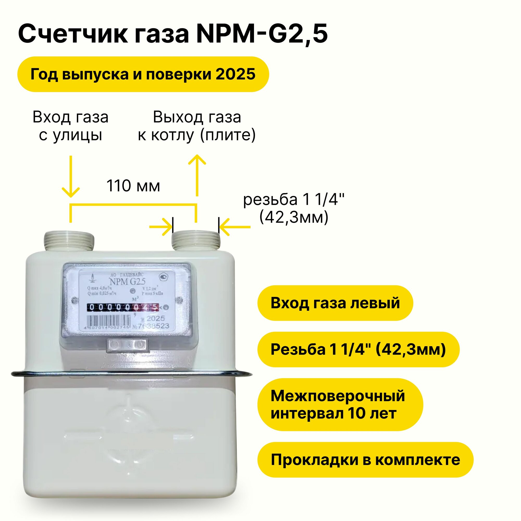 NPM-G2,5 (вход газа левый, резьба 1 1/4", прокладки В комплекте) 2025 года выпуска и поверки информация:
