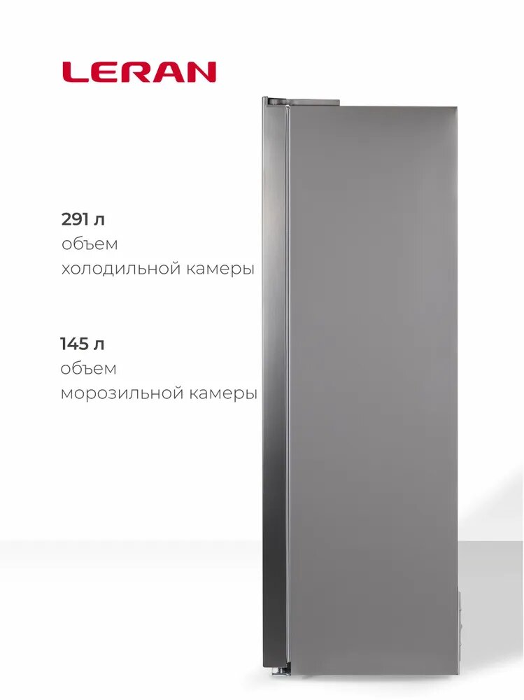 Холодильник двухкамерный LERAN SBS300IXNF, объем 472 л, серого цвета информация: