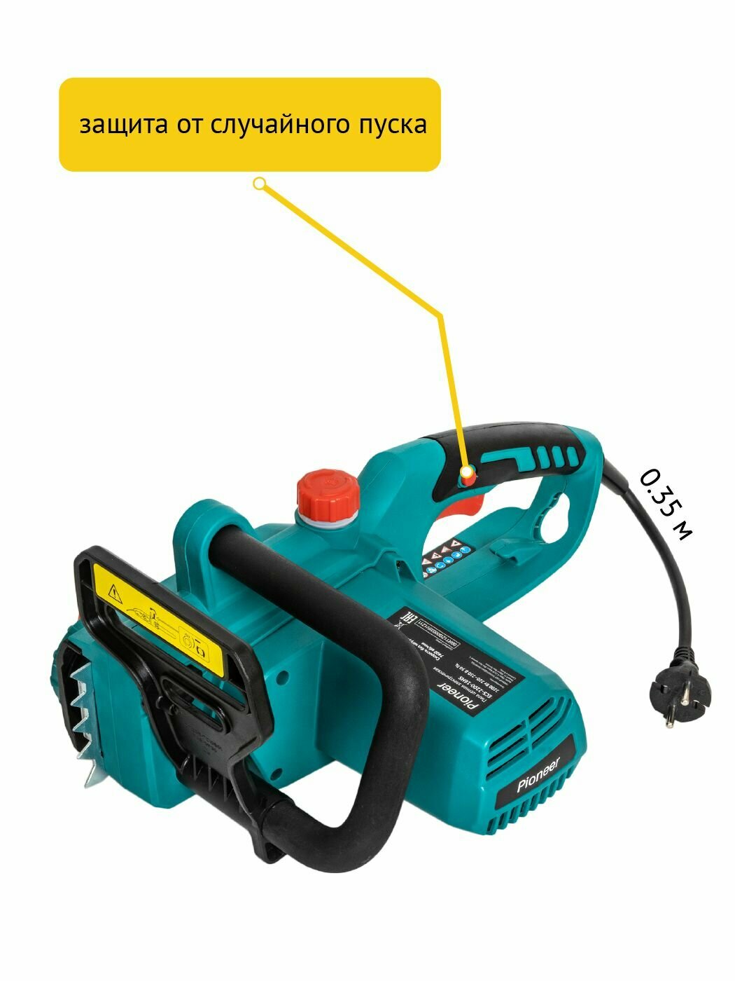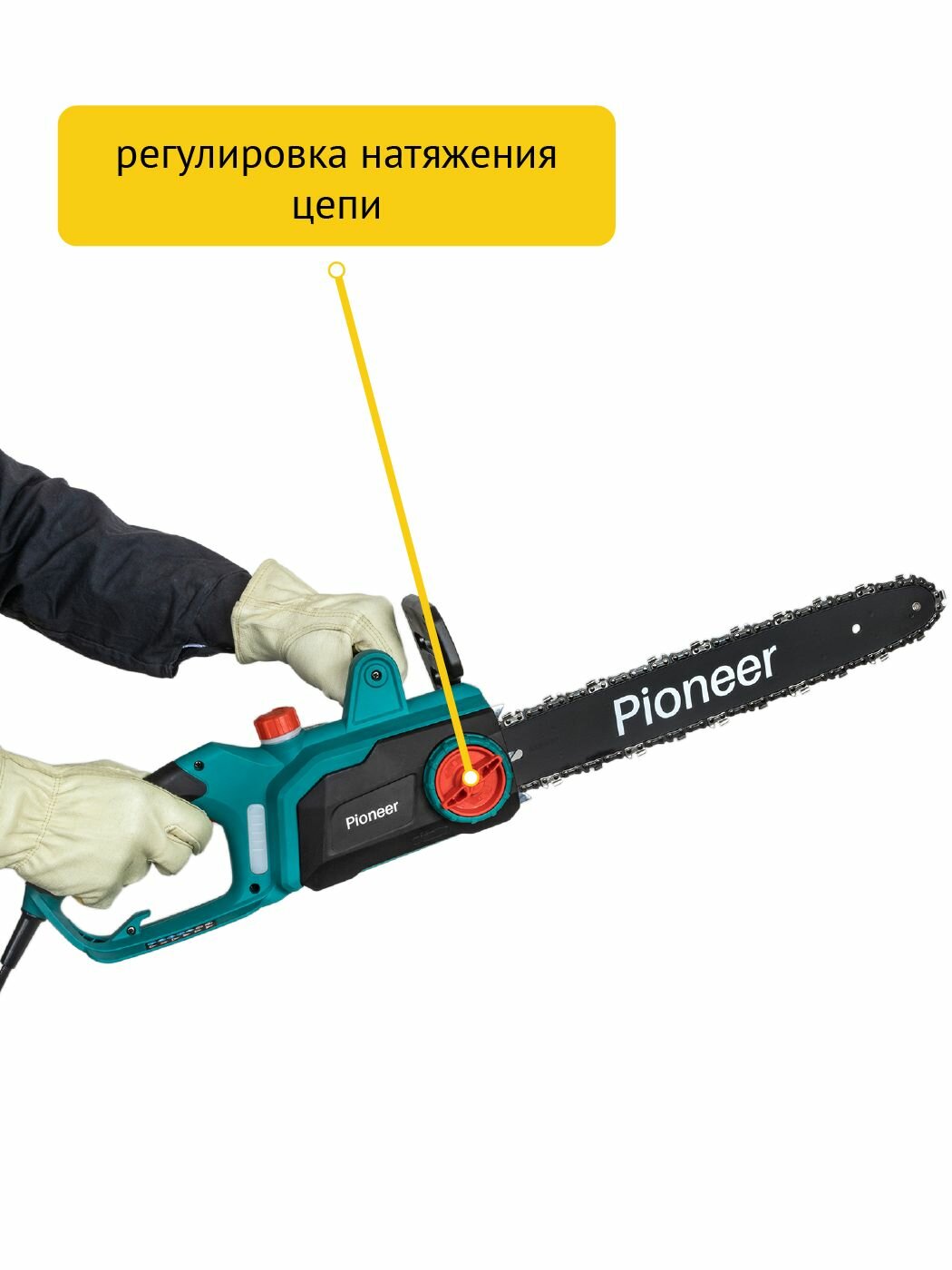 10 цен на Пила цепная электрическая Pioneer ECS-2200-16HS с щеточным двигателем, бесключевая регулировка натяжения, быстрая замена щеток, автоподача масла, монтажный набор в комплекте, 7400 об/мин, 2200 Вт