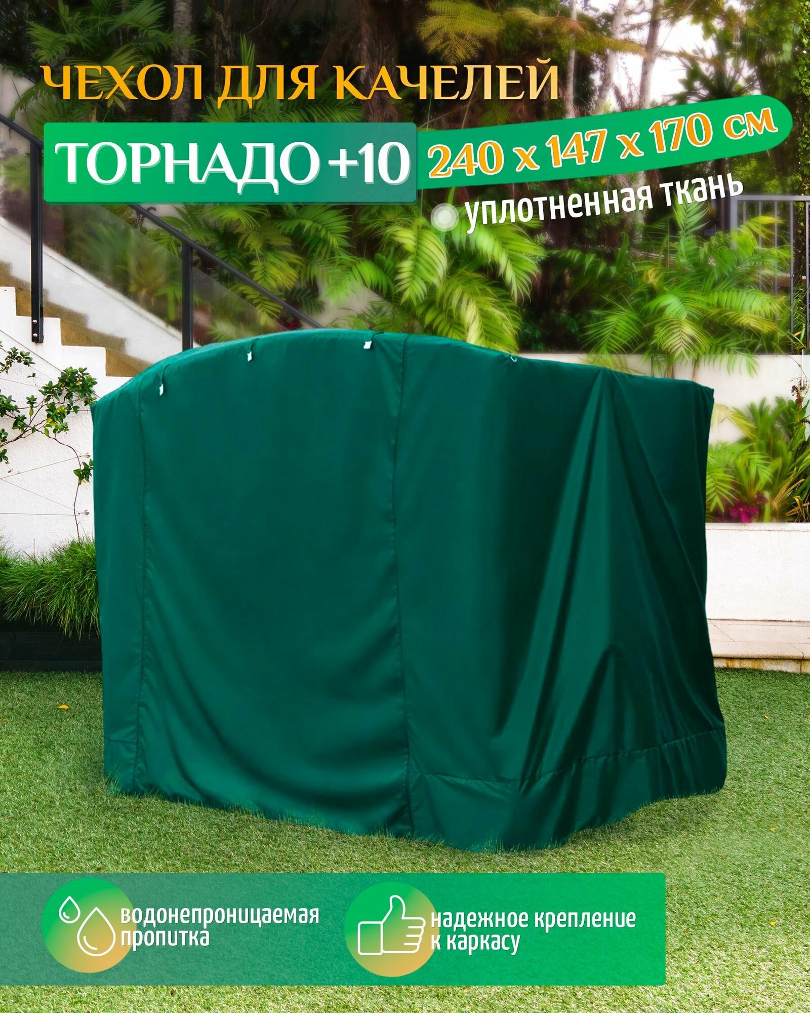 Чехол для садовых качелей Fler, водонепроницаемый Торнадо+10 (240х147х170 см) зеленый информация: