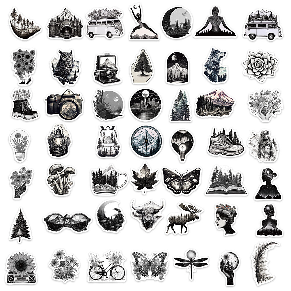 10 цен на Набор наклеек Поход в черном цвете Ретро, Винтаж для Скрапбукинга и творчества/ Voropaeva11