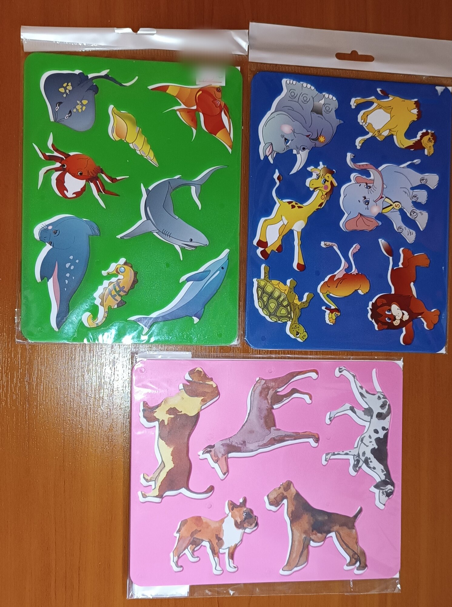 Отзывы на Трафареты набор из 3 штук, (животные Африки мультик, морские животные, породы собак)