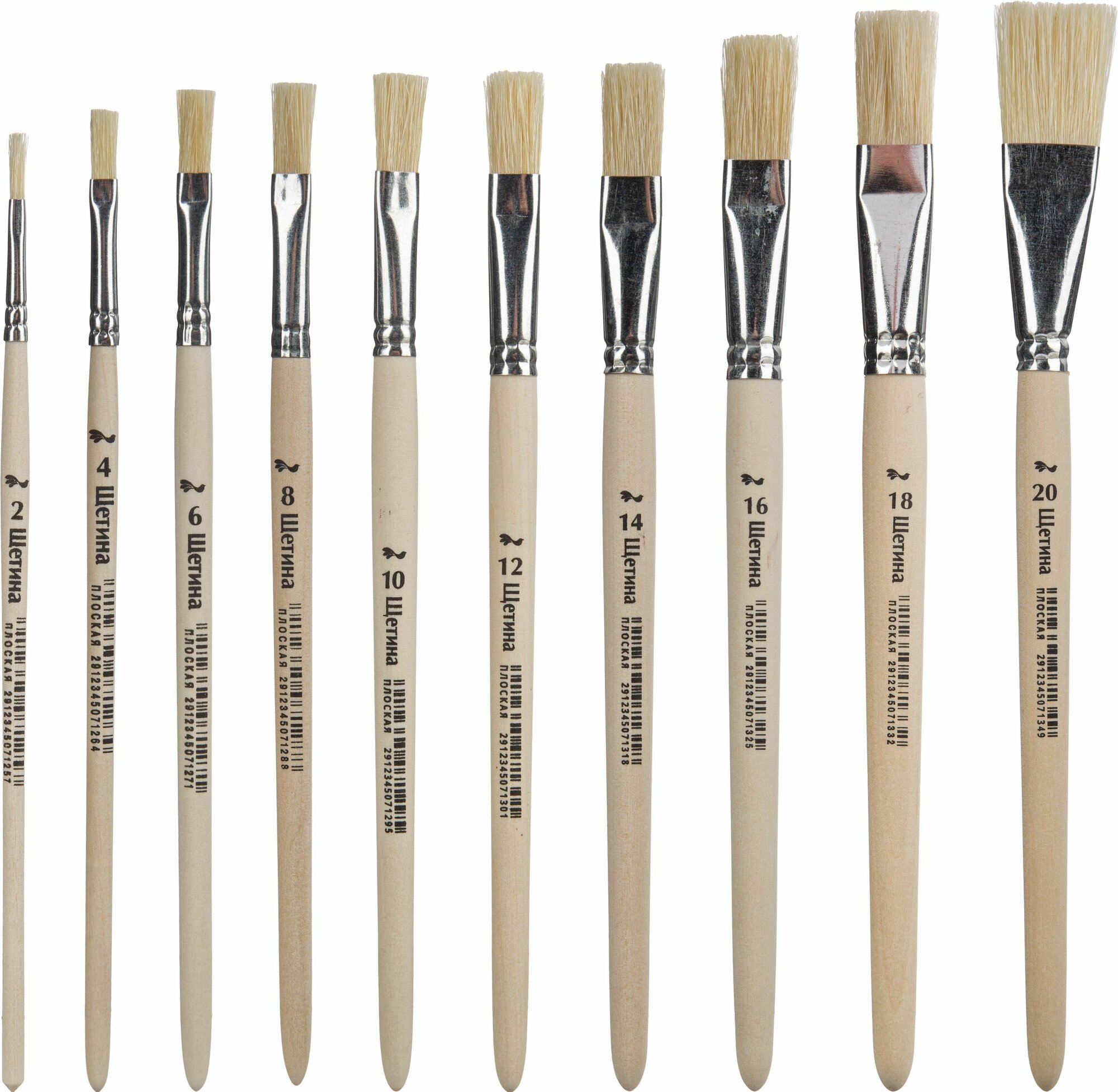 Набор кистей для рисования "Комус Школа", плоские, щетина, дерево, 10шт информация: