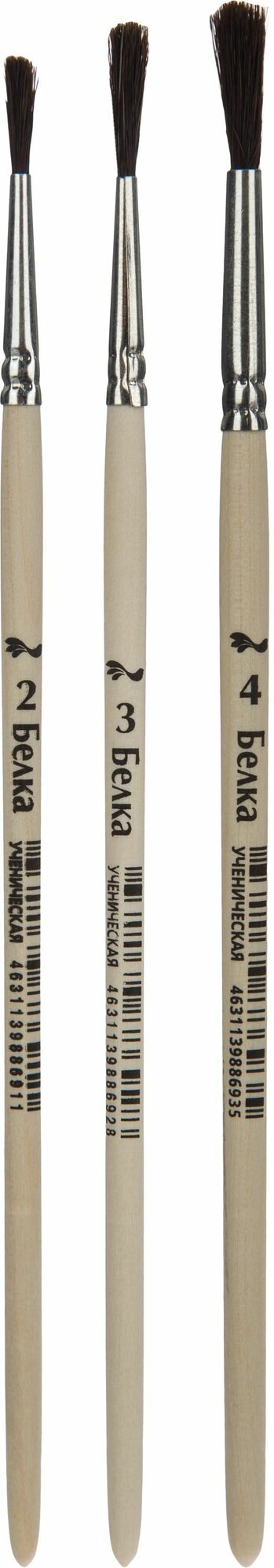 Кисть набор 3 шт №1 School Шустрики белка ученическая круглая №2, №3, №4