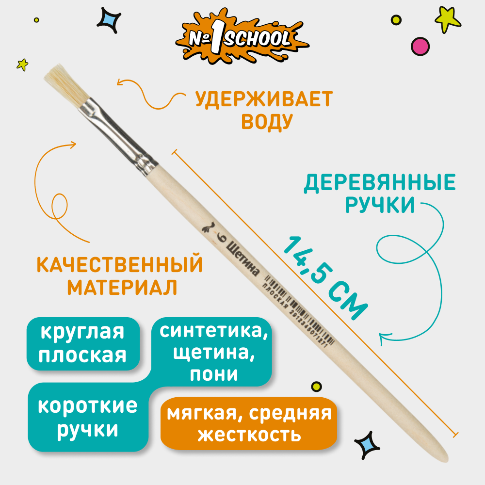 Кисти для рисования №1 School, плоские, круглые, пони, щетина, синтетика, 10 штук 403 ₽