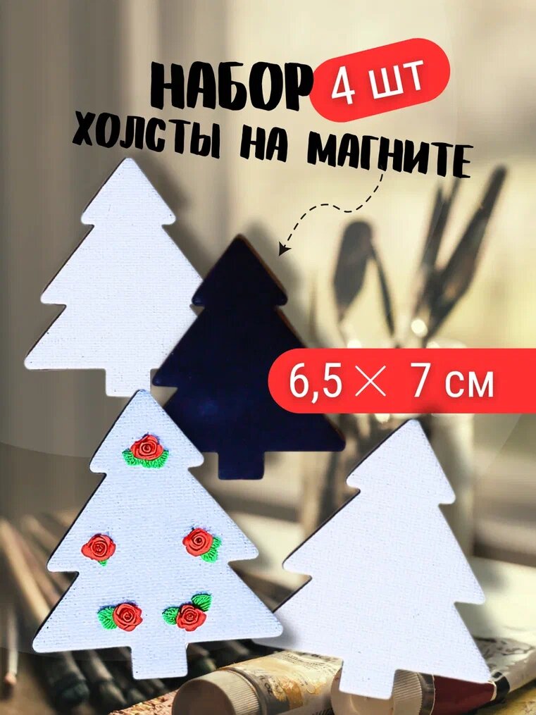 10 цен на Мини холсты на магните Axler ART, набор 4 шт, елка, 6,5х7,5 см